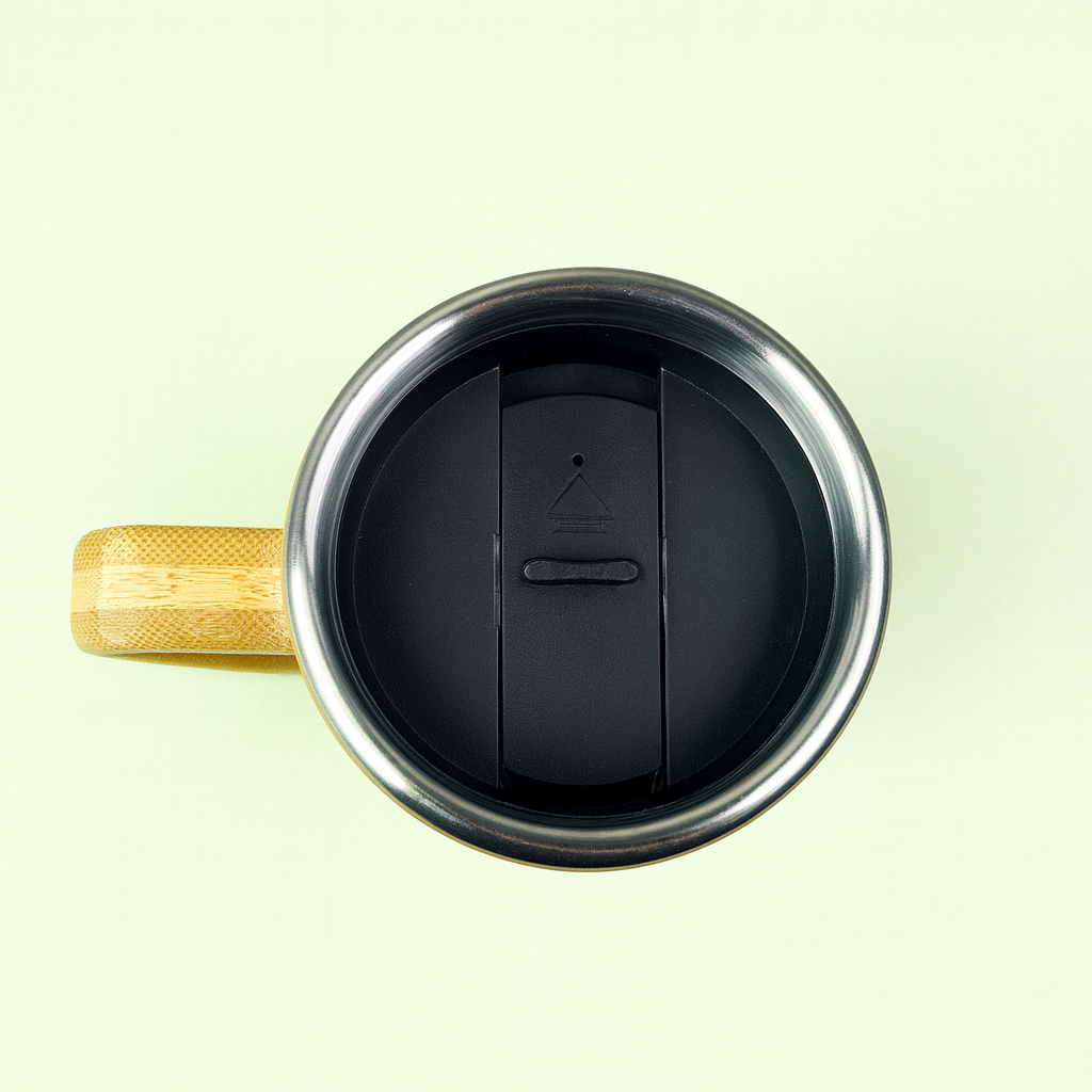 Natural Bamboo, Stainless Steel, 450ml Insulated Mug with Handle, Eco-Friendly Travel Coffee Cup